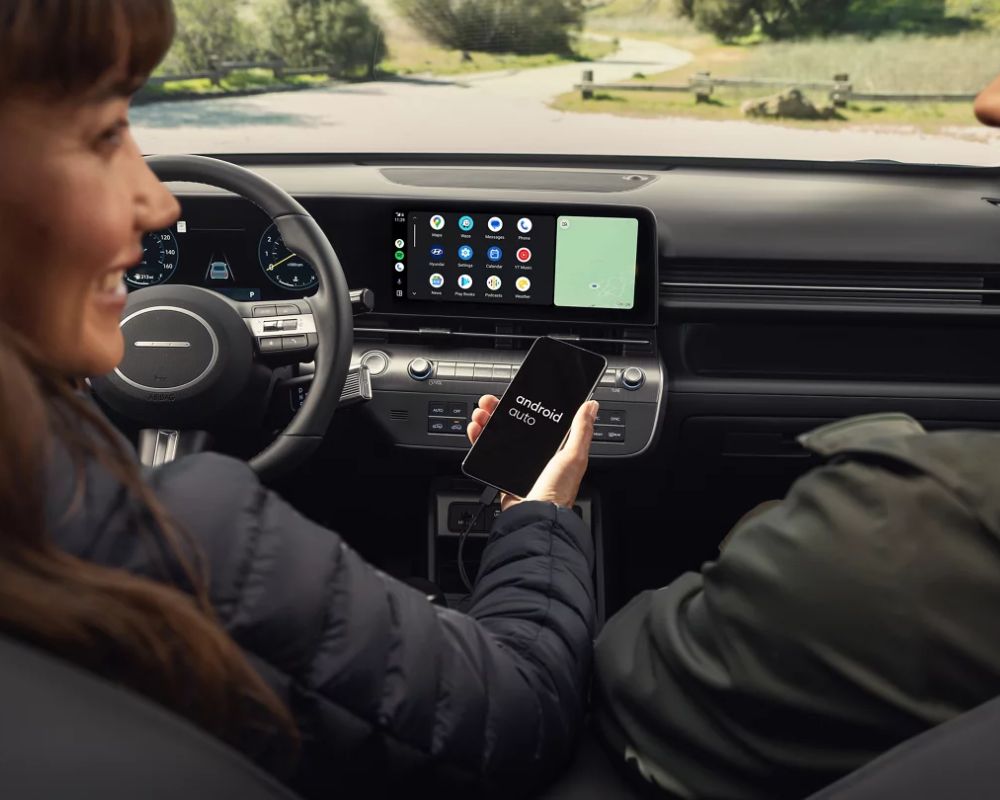 The Kona showcases an impressive infotainment system with dual 12.3-inch displays behind one continuous piece of glass. The first display is a reconfigurable gauge cluster providing essential vehicle information. The second display is a large touchscreen for the infotainment system, featuring Hyundai's updated user interface. Additionally, you can expect to see wireless Apple CarPlay and Android Auto in the 2024 Kona.