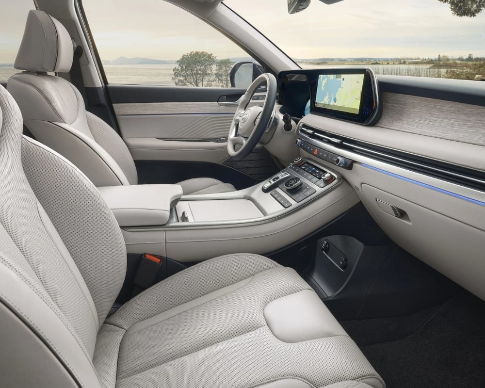 Inside, the Hyundai Palisade 2025 continues to offer class-leading space and premium materials. The SUV features available quilted Nappa leather seats, a spacious three-row layout, and heated and ventilated seats for both the front and second-row passengers. Families will appreciate the generous cargo space, which provides plenty of room for luggage, sports gear, or groceries.