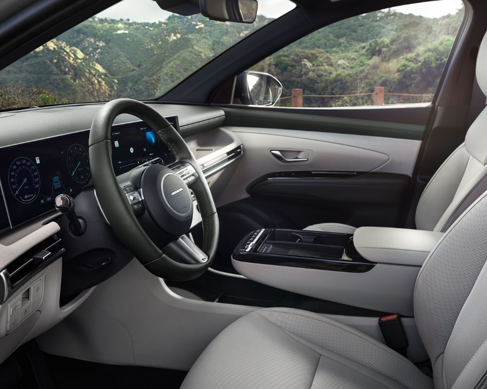 Step into the 2025 Hyundai Tucson, and you'll find a spacious cabin is equipped with standard heated front seats and a heated steering wheel. The Tucson also offers optional leather seating surfaces and a panoramic sunroof, creating an open and luxurious atmosphere. Cargo space is abundant, making the 2025 Tucson a prime option for families and adventurers alike.